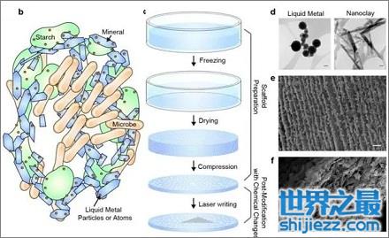 科研团队通过人工合成的方法构建由蒙脱土 (天然土壤成分,俗称「观音土」)、淀粉颗粒和液态金属三种组分组成的土壤仿生材料,并建立了一个肠道微生物发生紊乱的小鼠模型,土壤仿生材料被吃下后,肠道微生物菌群有所恢复,生态模型也重新建立。土壤仿生材料在生物制造和生物医药领域有着应用潜力。
