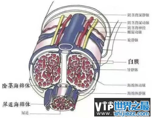 那我们就先认识一下小老弟是怎么博起的,音茎是由3个圆柱形的组织构成的:图中最上面的两个圆柱体是“音茎海绵体”,而靠近腹部的圆柱体叫做“尿道海绵体”,海绵体内有许多海绵体小梁和腔隙。