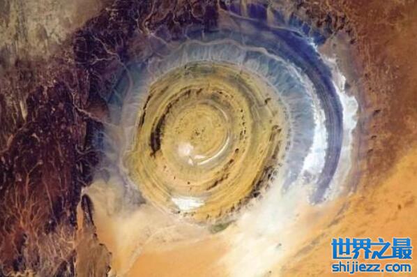 撒哈拉眼位于撒哈拉大沙漠西南部毛里塔尼亚境内,奇特壮观的圆形地貌像一只深邃的眼睛,而成因至今仍然是个谜。