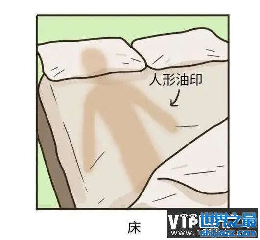 而且还有一股油油的味道,同样是一起换的床单,女人这边干干净净的男人那边就形成了人形油印。