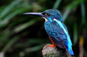 作为世界上十大颜色最鲜艳的鸟,雄鸟普通翠鸟的羽毛颜色最为多样,被称为鸟中美男子,它全身都呈现蓝绿色,而胸腹部则带有大片橙红色,眼睛两侧贯通了一条橙红色的带状纹路,而沿着这条纹路的周围分布着纯白色羽毛。而雌性的颜色则更加暗淡一些,而且蓝色较多,尤其是幼鸟更是缺乏蓝色光泽,基本都是褐色或者白色。