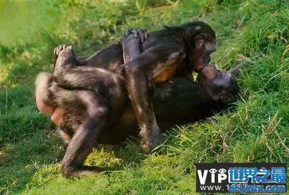 前文我们提到倭黑猩猩在嘿嘿的时候会呻吟。有趣的是,它们还会做很多我们人类嘿嘿时候会做的事情,比如说法式舌吻或者是“船教士”(面对面嘿嘿)。