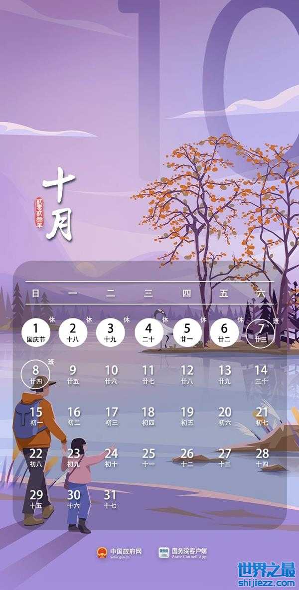 9月29日至10月6日放假调休,共8天。10月7日(星期六)、10月8日(星期日)上班。