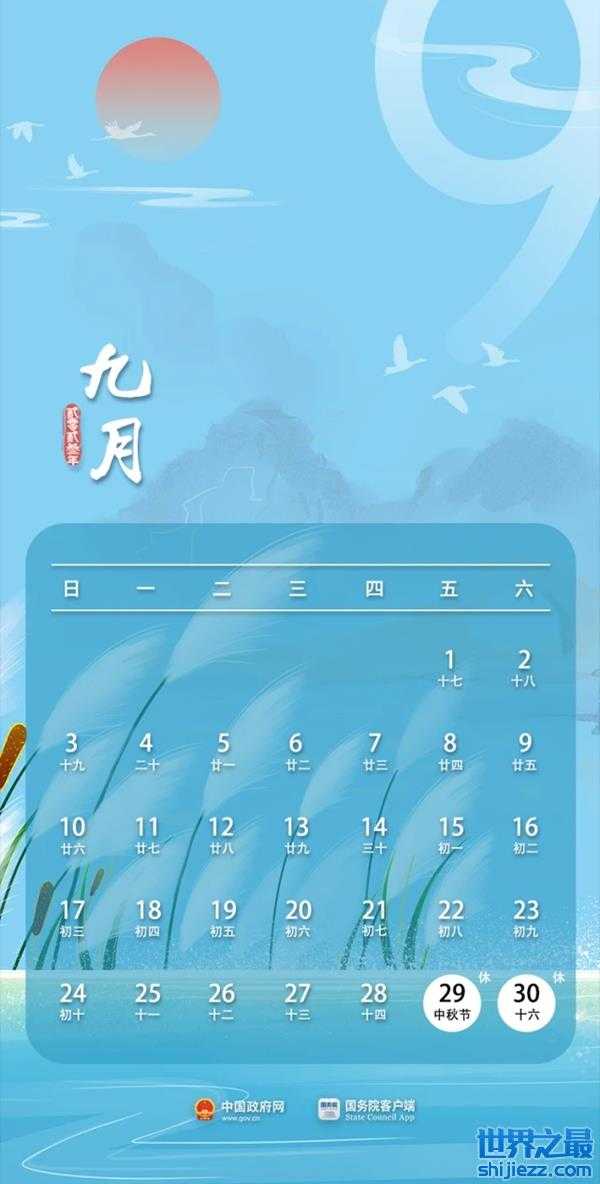 中秋节、国庆节:9月29日至10月6日放假调休,共8天。10月7日(星期六)、10月8日(星期日)上班。