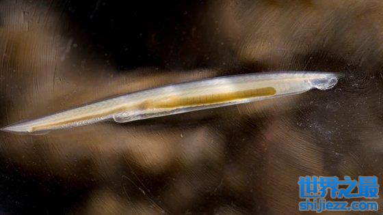它和一般的鱼不同,没有头,也没有脊椎骨、鳞片和眼睛。身体前端的腹面有口,口周围生有几十条触须。体形似小鱼,身躯柔软侧扁,而且是半透明的。文昌鱼是很小的海洋动物,我国厦门出产的品种只有4——5cm长度。