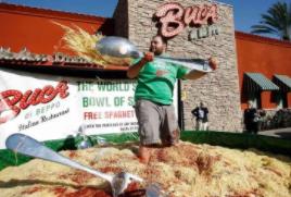 世界上最大的一碗意大利面条于美国的旧金山出锅,单单是面碗就宽达三米,面条更是重达1480公斤,足足导入了数十桶水桶大小的意大利面条才将碗填满,不过最终比较浪费的是面条并没有吃完,而是被六位“超级玛丽”糟蹋了。