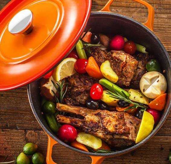 珐琅锅适合炖菜,例如红烧肉或者是红烧鸡翅等等。这种锅其实就是在外表有珐琅层,在锅里面有一层硅胶,能够充分的保温,但是这种硅胶是非常安全的,相当于医用硅胶,在人使用之后不会对身体产生任何的伤害,并且对于所烹饪的食物,保鲜性还是比较完美的。