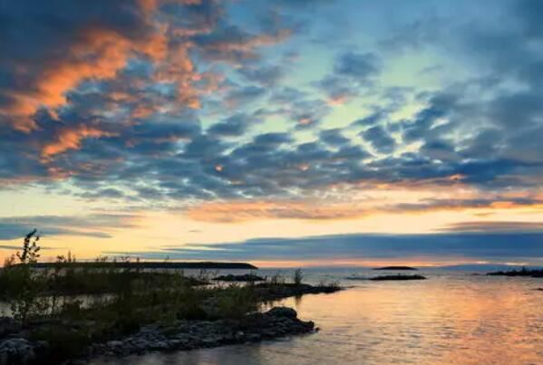 苏必利尔湖是一处世界上面积最大的淡水湖,有着82414平方千米湖泊面积,蓄水量达1.2万立方千米,一个湖泊占五大湖蓄水量的一半以上,延绵3000千米的湖岸线,周边森林密布,并有着近200条河流注入湖中。