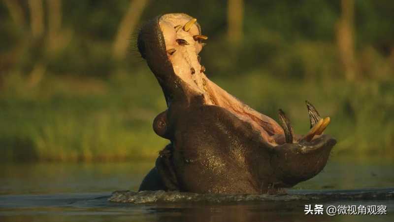 但河马并不是一贯喜欢防守的动物,河马也是食草动物中咬合力最大的。