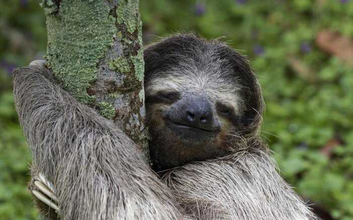树懒的外观特征包括身体笨重、肢体粗短、指爪弯曲,皮毛又长又柔软,通常为浅灰色或黄褐色。它们的头部圆形,鼻子扁平且口吻短小,眼睛小而圆。由于其行动缓慢,它们的毛发上经常有寄生虫和藻类的生长。树懒的脸部轮廓与人类相似,尤其是它们的眼睛和鼻子。