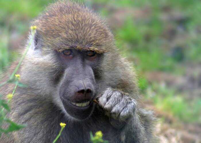 狒狒的外观特征包括长而粗壮的四肢、灰褐色或灰黄色的皮毛、长而尖锐的犬齿和具有明显颜色的臀部。它们的身体普遍较大,个体体重可以达到50公斤以上。与其他猴子不同的是,它们的面部没有突出的颊囊,但嘴唇能够向外突出,从而形成一个类似于口袋的结构,用来储存食物。狒狒有类似于人类的鼻子、嘴唇和眼睛,因此也被认为是长得最像人类的动物之一。