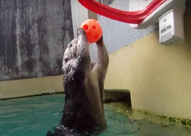 水獭埃迪在网上享有盛名,来自俄勒冈州动物园的15岁水獭被训练成打篮球,它在篮球方面的能力很强,在网络上有着非常高的名气。