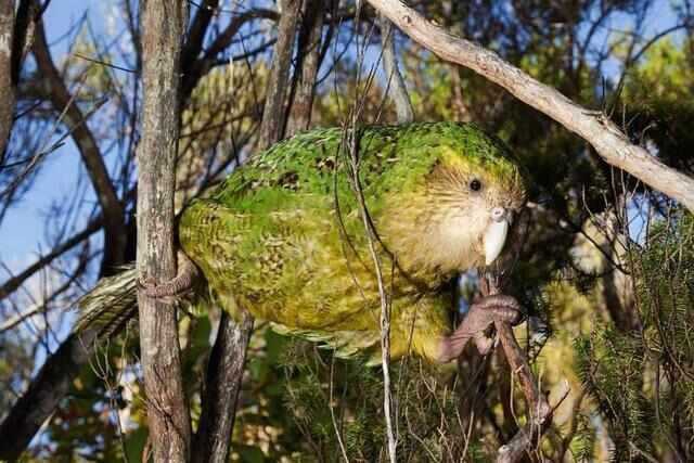 鸮鹦鹉是新西兰独有的一种濒危鸟类,其最大的特征是空有一身的羽毛和翅膀,却不会飞,活动方式是行走。它们常常忘记自己是一只不会飞的鸟,爬高爬低的,结果总摔个“狗吃屎”,有些甚至活活摔死,这也是鸮鹦鹉濒临灭绝的一个重要原因。