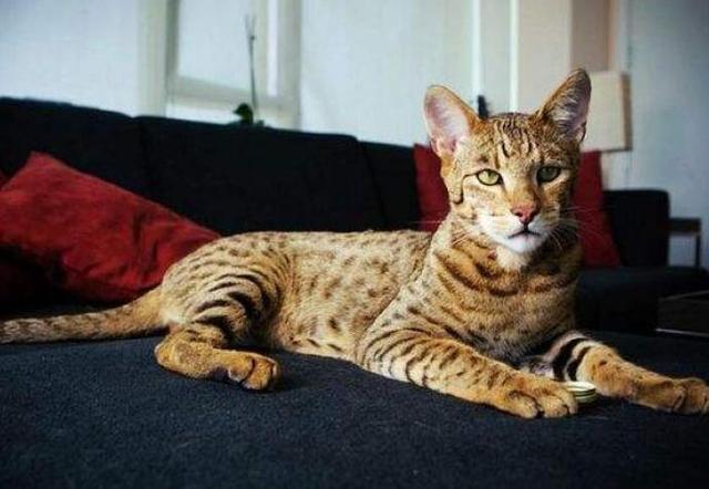 阿瑟拉猫世界上最大、最稀有的家猫,它的体型比较大,毛皮上长有虎纹和豹点,外形看上去像一头小云豹,因每年繁育数量不到100头的特点,造成了它的价格高昂,它有一对突出的大耳朵,寿命可达25年,不少好莱坞巨星都养了这种猫。
