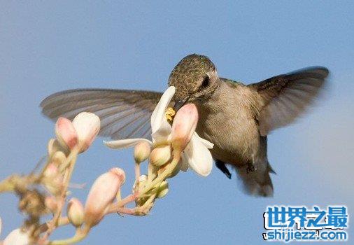 蜂鸟生活在拉丁美洲,有六百多种不同的种类。刚才说的世界上最小的是生活在古巴。小小一只蜂鸟可有很多之最呢!它还是世界上每秒钟振动翅膀次数最多的鸟。正因为它的翅膀振速最快,所以它也是世界上唯一能够朝后飞的鸟。