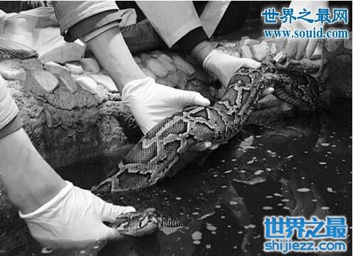 小蛇长成巨蟒,成为名副其实的“蛇保姆”