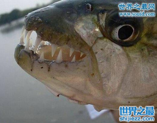 老虎鱼的身长可达到1.8米,牙齿锋利,向外突出,极具攻击性。这种鱼领地意识极强,会对任何侵入者发动猛烈攻击。