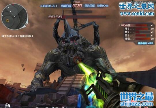 一来你旁边的时候就贴着墙按W然后按空格键,让自己飞在空中,因为在空中是无敌的。(最后火会一直喷在补给子弹的地方,这时候不要去补给,等它喷完先)再来,就是BOSS会飞出很多车出来,一样,也是躲在BOSS的嘴下面的蓝网墙,看着车子快下地的时候也按W然后按空格键,飞起来。最后建议你一直都在接近BOSS的篮网墙下打BOSS,这样容易躲。