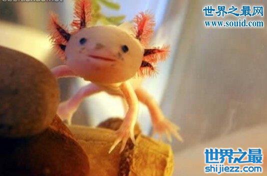 美西螈,蝾螈的幼体,未经过变异,面部表情就像搞怪的人面人物。美西钝口螈,俗称六角恐龙,是两栖类动物,因其独特的外貌及幼体性成熟而著名。在全球有作为宠物而被饲养(特别是北美等地),有明显的肋骨间沟,尾部侧向压缩,头部宽大,眼小,不好动。