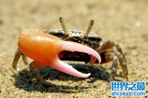巨招潮蟹是生活在海边的蟹类,它和其他蟹类不同他的样子很奇怪,奇怪的地方不是螃蟹的其他地方而是他的蟹爪,会有一直显得特别大,那是什么原因照成了这种特别奇怪的现象呢,首先得申明的是这种情况只发生在雄蟹身上,他的大的蟹钳是用来战斗的,而另外一个小的是用来筑巢和捕食的,不得不说大自然的进化真的是很神奇,下面一起来看看巨招潮蟹的详细资料吧。