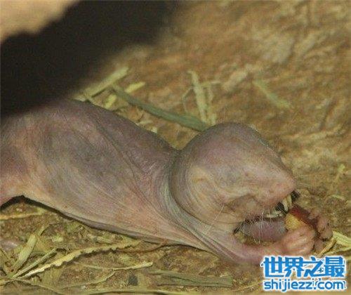 裸鼢鼠有一个奇怪的名字,同样也有一个奇怪的外表。这种动物可以说是地球上最奇怪的哺乳动物。这些穴居啮齿类动物白天生活在地下,而且它们的种群是一个母系社会。这种动物的种群中只有一只雌性有生育能力并负责生育出种群的所有幼崽,就像蚁群中的蚁后一样,而其他的雌性却没有生育能力。