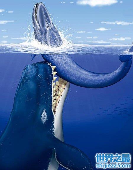 龙王鲸作为海洋一霸,吃鲨鱼,咬海龟,无所不能。如果龙王鲸能活到现在,海洋将一片寂静。那龙王鲸有天敌吗?有!龙王鲸的死对头是一种叫做鼠白鲨的鲨鱼,它们互相残杀,相互捕食,战斗力不分伯仲。鼠白鲨是十分活泼的鲨鱼,嘴巴大,牙齿尖,性格凶猛,能够吞食大型海洋生物,与龙王鲸水火不容,相生相克。