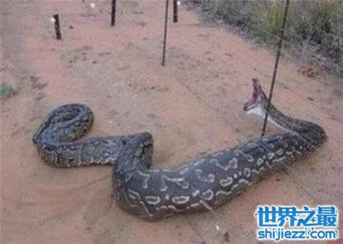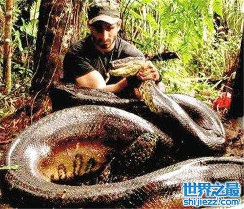 看图片,这条蛇显然比下面提到的据说是见于记录的世界上最大最长的蛇(印度尼西亚的网斑蟒“桂花”)要更大更长:目前世界上发现的最大的蛇,是2006年在印度尼西亚活捉并展出的大蟒。该国一家小公园展出了这条非常罕见的蛇,身长14.85米,体重447公斤。这是近100年来人类发现的最长、最大的蛇,也是目前世界上所知最长、最大的蛇。据英国媒体报道,这条大蛇是在印尼西部苏门答腊岛的一个原始森林中被发现的,当地人将它捕获后卖给了公园,公园的管理人员将这条大蛇取名为“桂花”。虽然名字听起来比较温柔,但据说“桂花”的大口一旦张开非常吓人,可以很轻松地吞下整整一个人。