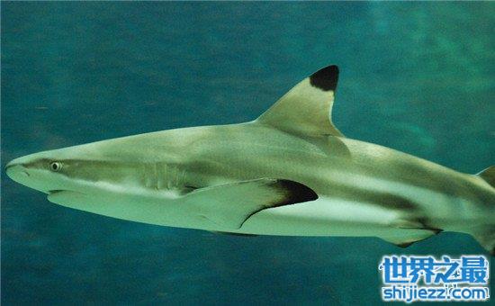 乌翅真鲨又叫污翅白眼鲛,是一种生活在热带及温带海洋中的鲨鱼,一般体长在1.5-2.1米之间,乌翅真鲨的胸鳍和背鳍顶端是黑色的,而下部是黄色的,主要以珊瑚鱼、鲟鱼、乌鱼等为食,一般不会主动攻击人类,但是当有危险或感到愤怒时会对敌人展开疯狂的攻击,乌翅真鲨是少有的能越出水面的鲨鱼。