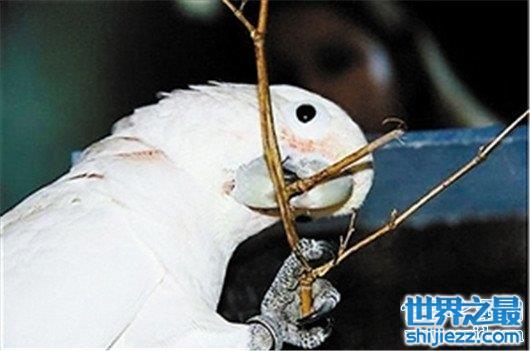 下面这位是鹦鹉费加罗,小编之所以把它列为地球上智商最高的10大动物就是因为它聪明到可以自己制造工具,从而生产食物,来满足自己的胃口。别的不说单单从它可以自己制造工具这一点他完全就有权利入列。