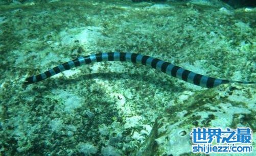 而这海洋上最毒的蛇,艾基特林海蛇是生活在海洋里的的毒蛇,体型也较大,体长约在2米左右,身体呈圆筒形,尾巴细长,背部是深灰色,而腹部是黄色,全身带有黑色环形。