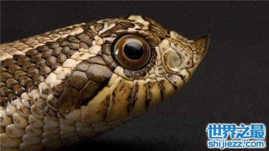猪鼻蛇的外貌很有特点,有点类似于我们平时生活中见到的假蛇,甚至还要小一些,非常的小,Q萌Q萌的,它的头比较圆润,有一对超级大的圆眼珠,如果你没有注意的话,还会以为自己看到了一个猪鼻子呢,猪鼻蛇的名字也由此而来。