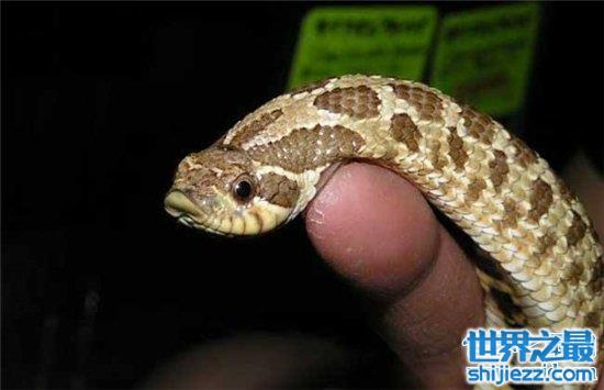 很多喜欢蛇类动物的人都比较钟情于猪鼻蛇,因为它的个头非常小,整个身体的长度加起来大约为15~20cm,而且全身都布满了淡淡的黄色花纹,特别好看。它总是胆子很小,不敢攻击别人,因此被人们称之为这个世界最胆小的蛇。