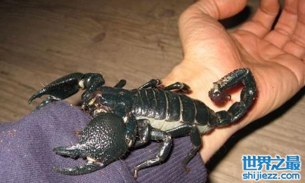 作为五毒之一的蝎子,体型大多数在3~9厘米的样子,也有长的特别大的,比如非洲帝王蝎就是一种比较大型的蝎子。普通的帝王蝎可以长到20厘米的样子,大的通常能够超过30厘米,可以说是世界上最大的蝎子了。这种蝎子的毒性不大,毒液却很有药用价值。
