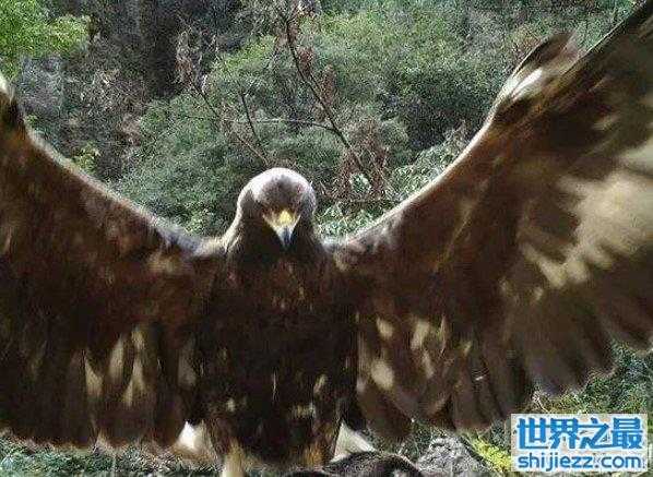要知道,金雕是世界上体型最大的猛禽之一,通常体长可达1米,翼展可达2米,但这次发现的1.2米金雕就属于相当少见了。当然有人可能会奇怪,这金雕全身上下没有一块是金色的,为什么要叫这个名字呢?其实,这是因为金雕从头后到脖子上有一块漂亮的金色羽毛,因此而得名,但平时从正面抓拍的照片则是不容易看到的。