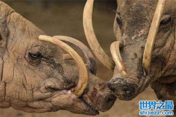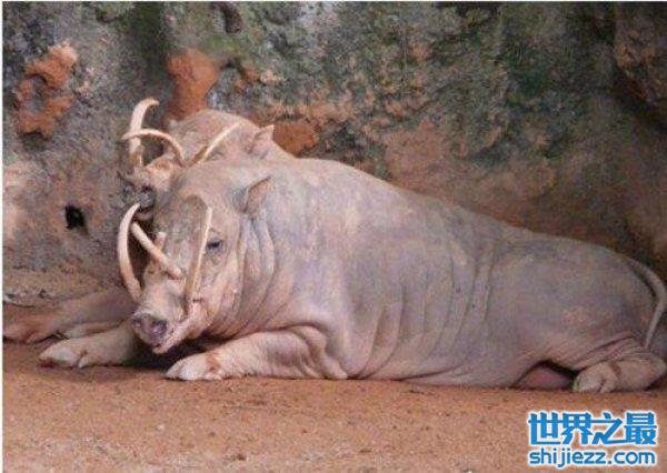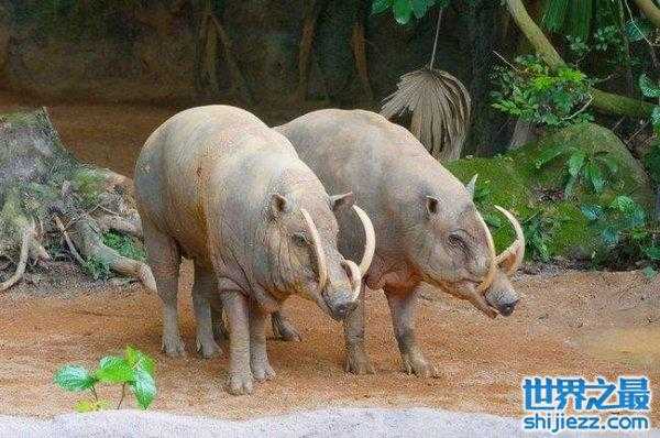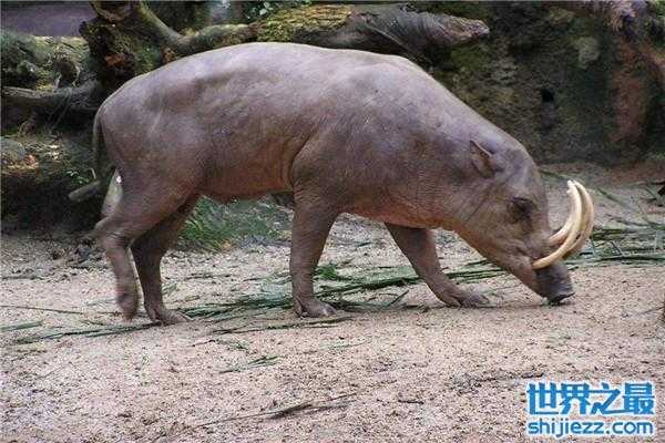 鹿豚被称为世界上最奇特的猪,因为它有长长的獠牙,当然了野猪也是有獠牙的,不过鹿豚的獠牙不仅长,而且有四个,除了嘴角两侧长有一对獠牙之外,它的另外两个獠牙则是从嘴巴中穿过了脸颊而长出来的。