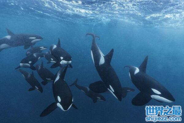 虎鲸是一个动物界中最稳定的家族高度社会化动物,会进行复杂社会行为,由多只虎鲸组成。它们在全球所有的海洋区域均有分布,这种性情凶猛的动物会去袭击其它鲸类,并且是企鹅、海豚、海豹等动物的天敌,可谓是海中的海上霸王。