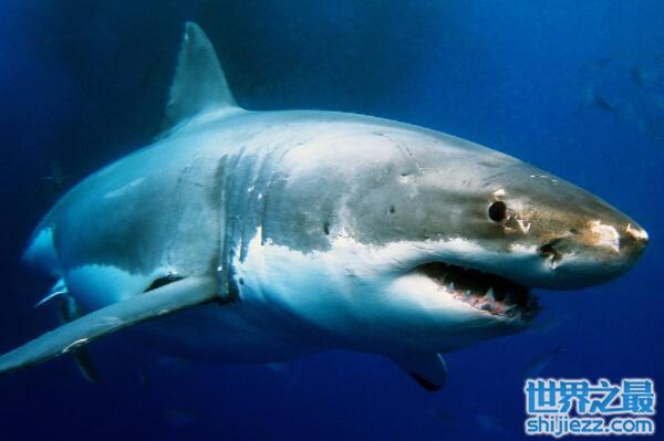 大白鲨又被称为噬人鲨,是一种身体呈粗壮的纺锤形的大型凶猛鲨鱼,通常会以平均每小时3.2千米的速度生存在表层下至水深1280米处,而这种凶猛的鲨鱼除了会捕食各类海洋生物外,优势还会袭击船只或攻击潜水的人类。