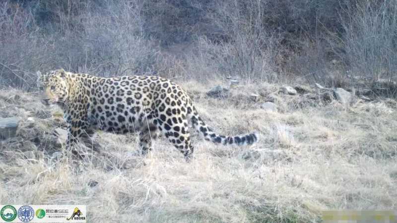 而之所以会被认成母豹子,一是因为这只豹子的金蛋蛋确实藏得很深,估计是臀部脂肪储量过丰加上毛长,挡上了;二是六盘山的相机很多都设置成3张照片+1段视频的模式,这种模式胜在省空间,适合动物数量多且回收不方便的点位,但对于纯路过的个体,拍完三张照片之后的视频基本就是空拍了,所以也就不会有那么多机会给你逐帧地找蛋蛋。