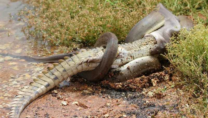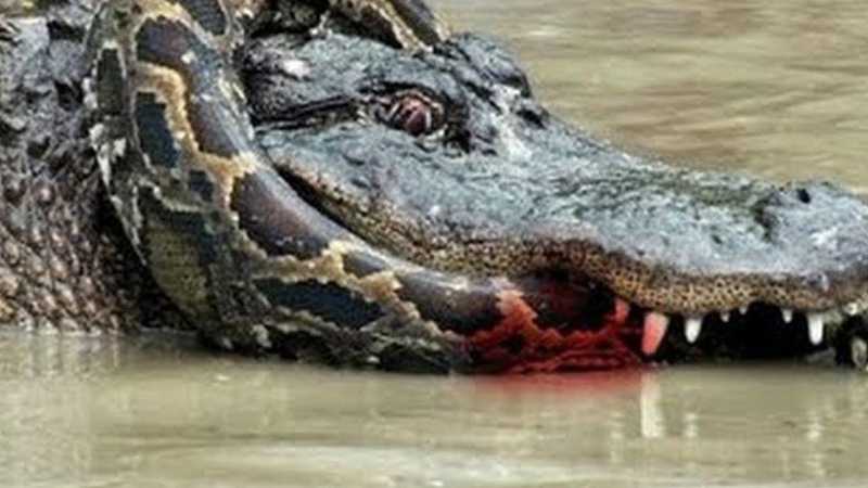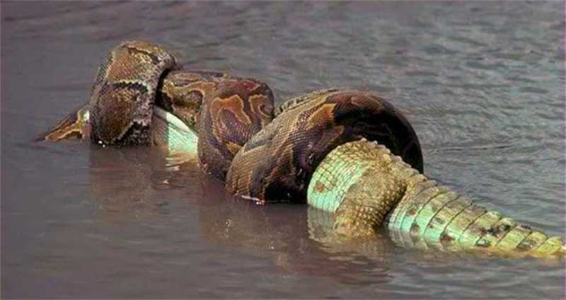 森蚺vs湾鳄,当蚺科老大遇到鳄科一哥,究竟谁会笑到最后呢?