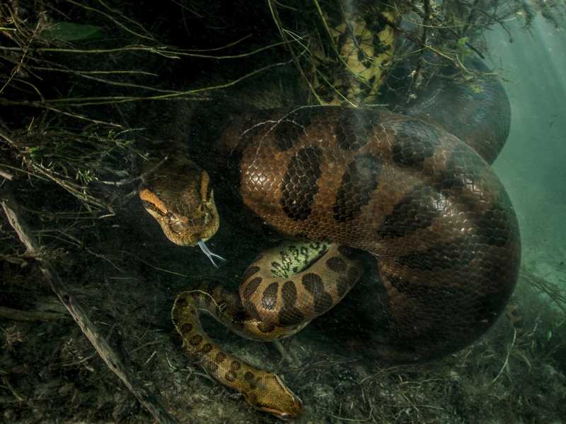 森蚺又叫绿水蚺或绿水蟒,是蚺科家族中最大的一种,主要栖息在南美洲的亚马逊雨林中。不过,和大多数巨型蛇一样,森蚺并没有毒。森蚺曾在恐怖文学和电影中被描绘过,它们通常巨大得令人难以置信,并且能够吞下成年人,但在现实中,森蚺的攻击性远没有其它掠食者那么强。