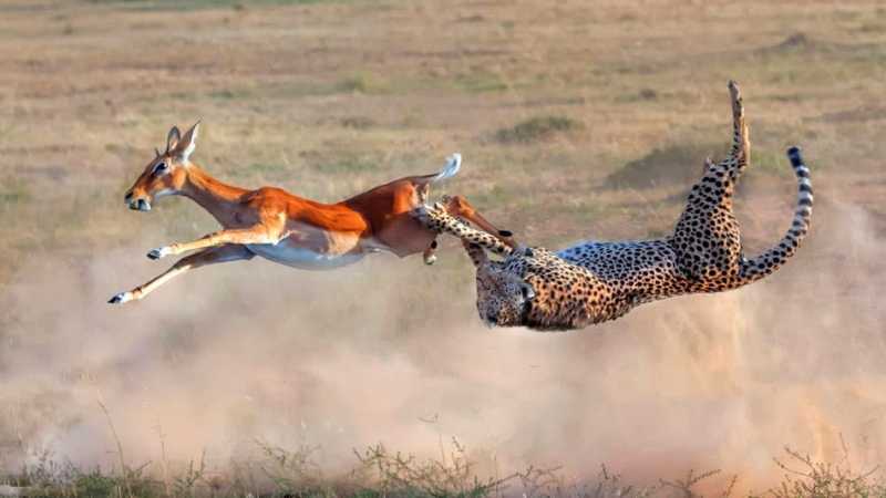 这使得猎豹只能捕杀一些小型的哺乳动物,最常见的就是同样以奔跑速度著称的羚羊了。