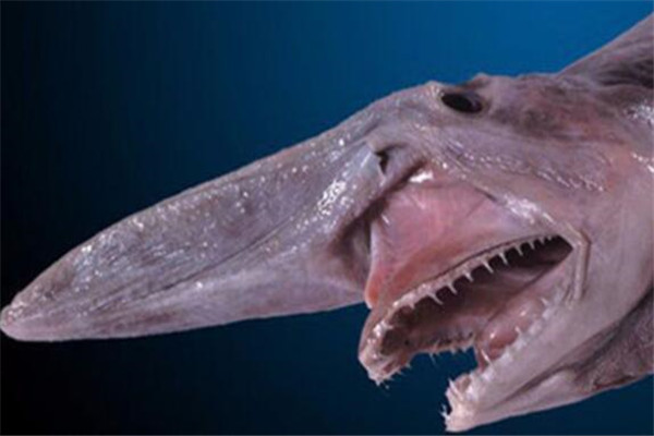 精灵鲨主要生活于深海之中,性格上是比较凶猛的那种,牙齿锋利,加上向前突出的尖突能迅速捕捉猎物,体内的血液据了解是粉红色的。