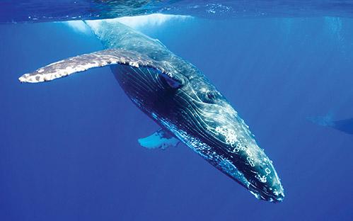 蓝鲸不仅是最大的海洋动物,也是世界上最大的动物,其体长达30多米,体重达180吨。据称,一头成年蓝鲸的体重约为非洲象的30倍左右。据说,仅其舌头上就能同时站立50个人,心脏有一辆小汽车那么大,小婴儿甚至能在其动脉血管穿行。