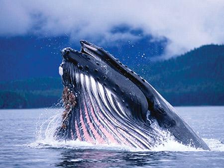 蓝鲸体形如此之大,理所当然会吃得很多。不过,它们却并不凶狠,不像鲨鱼那样极具攻击性。蓝鲸主要以一些磷虾为食,有时也吞食一些甲壳类浮游动物。据称,蓝鲸一次能吞食200万只磷虾,每天要吃4000~8000千克食物才行,一旦腹中的食物少于2000千克,它就会产生饥饿的感觉。