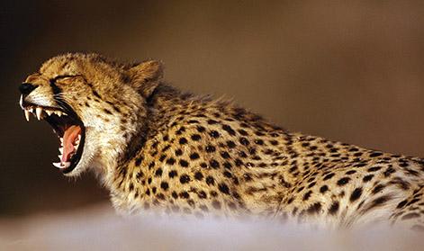 猎豹在短跑时虽是冠军,但在长跑时就不这么“威风”了。它长跑起来平均时速只有60千米,跟非洲鸵鸟差不多。猎豹捕食主要是凭借爆发力突然出击,因为其耐力极差,如果在很短的时间内没有捕获到猎物,它就会自动放弃,等待第二次出击的时机。虽然猎豹有足够快的速度,捕食成功率也在5%以上,但是它捕到的猎物并不是很多,因为猎物时常被更强的动物抢走。