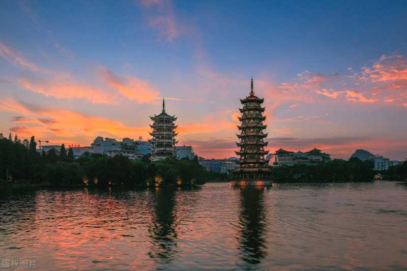 桂林山水是中国闻名于世的地标式山水名胜,典型的南方喀斯特地貌和三百里漓江,塑造了桂林山清水秀、洞奇石美的风景奇观。桂林市区的两江四湖构成了城市中心别具一格的山水格局,“城在景中,景在城中”,游走于桂林街头就仿佛徜徉在碧水翠山之间,自古以来就有“桂林山水甲天下”的美誉。