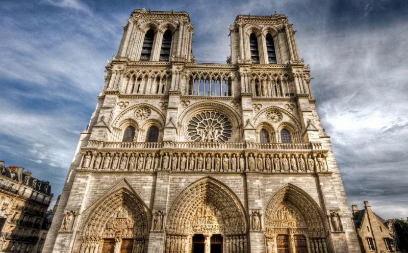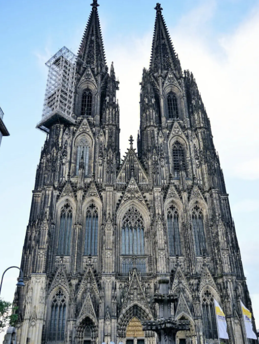 高耸的尖塔:哥特式教堂的尖塔是其最显著的特征之一。尖塔向上延伸,与天空相接,象征着人们对上帝的向往和神圣的力量。著名的尖塔包括巴黎圣母院的尖塔和科隆大教堂的双尖塔。