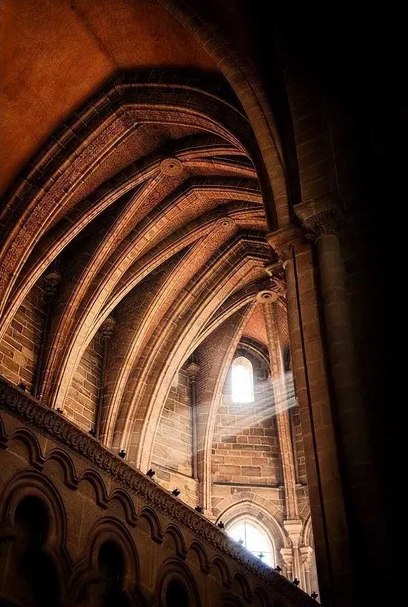 飞扬的拱顶:哥特式建筑使用了复杂而优雅的拱顶结构,例如尖拱和扇拱。这些拱顶不仅具有美学上的吸引力,还能有效地支撑建筑物的重量,并将重力引导向建筑的支柱和墙壁上。