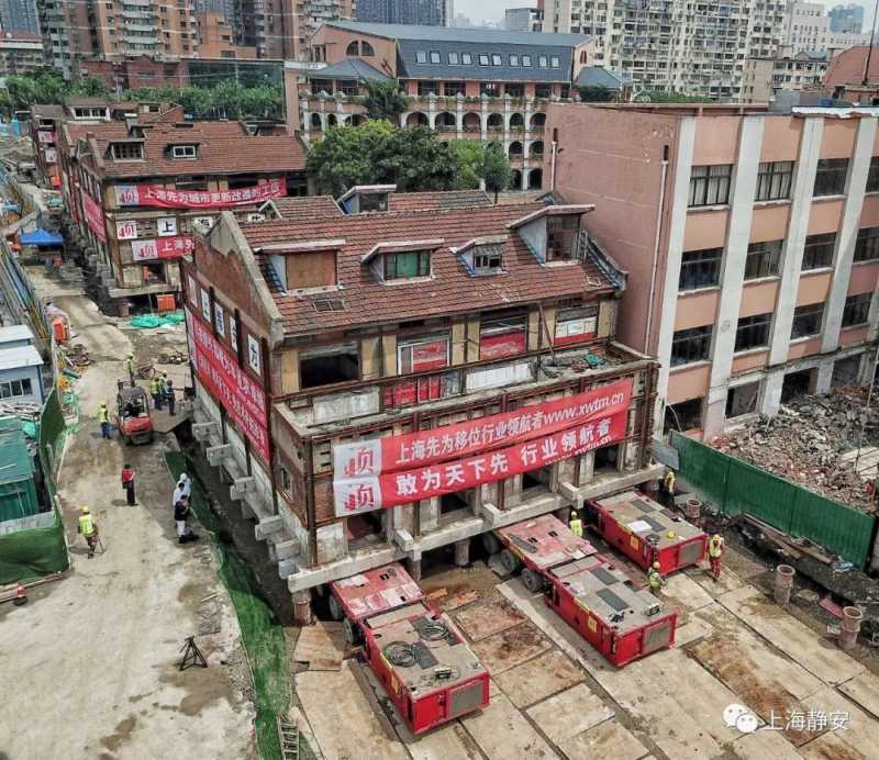 为确保永庆里5幢历史建筑在整体平移过程中完好无损,从7月初起,平移公司对上述历史建筑进行了加固、切割和顶升,现在已开始正式平移,所有建筑有望于本月中旬全部平移至临时位置。