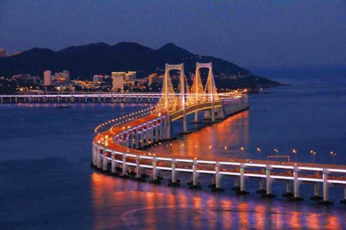 星海湾跨海大桥是大连市的一座标志性桥梁,连接了市区与星海湾地区。大桥全长6000米,是目前世界上在海上修建的最长跨海大桥之一。大桥的建设充分体现了我国在桥梁建设方面的先进技术和创新能力,成为了大连市的一道亮丽风景线。